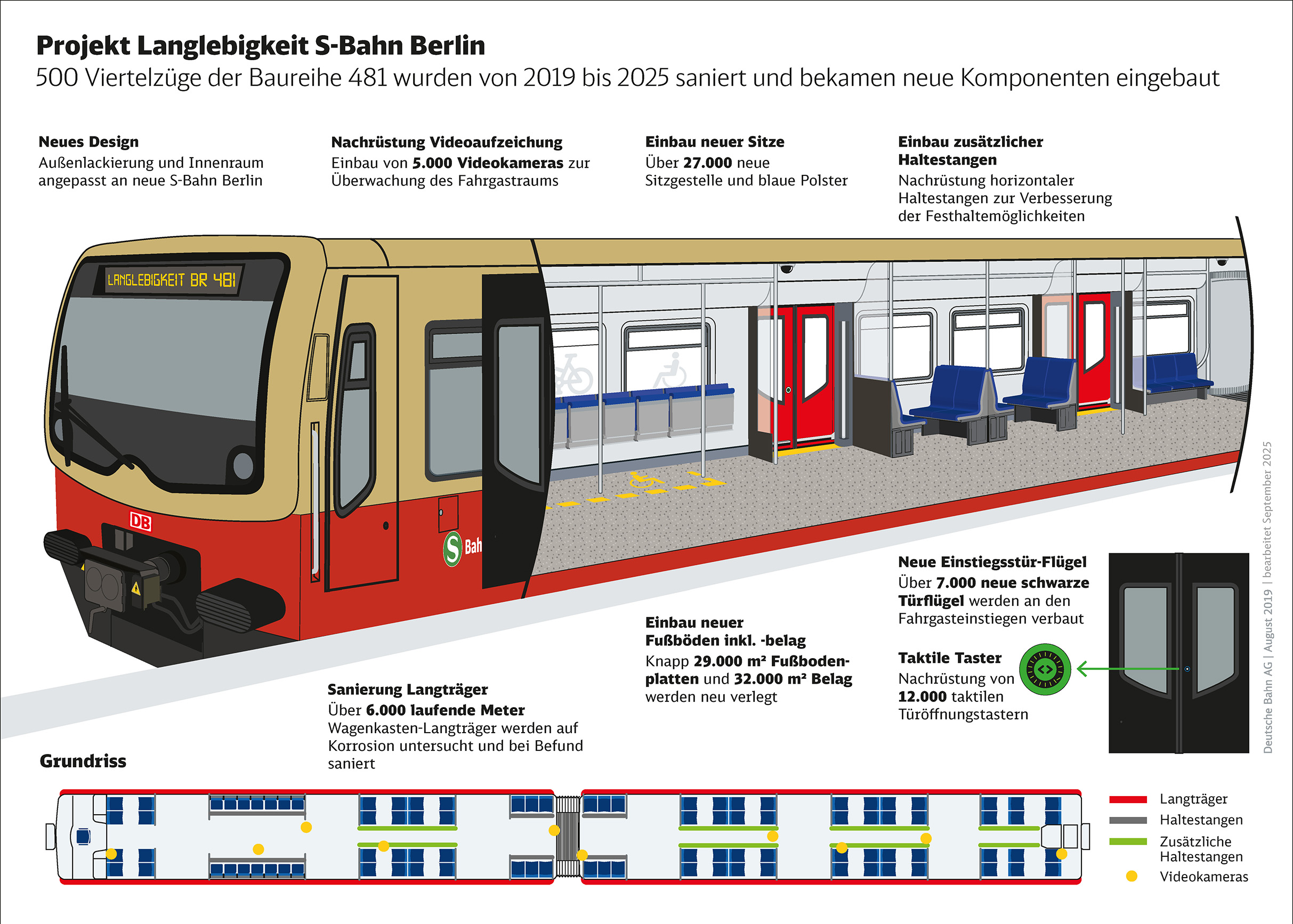 Fahrgast und Verkehr Weltpremiere im hohen Norden In Kiel bringt DB Regio weltweit erstmals einen Dieselbus mit umweltfreundlicher Propangasklimaanlage auf die Straße. Seit September betreibt das Tochterunterneh- men Autokraft dort im Rahmen eines Pilot- projekts einen umgerüsteten MAN A20, Baujahr 2017 im überwachten Betrieb im Li- nienverkehr. Mit der Premiere adressiert DB Regio Straße gemeinsam mit den Partnern Eberspächer, OES-Line und HYDAC eine zentrale Herausforderung der Bus-Branche: Einerseits schränkt die Neufassung der EU- Verordnung über fluorierte Treibhausgase die Verwendung herkömmlicher syntheti- scher Kältemittel massiv ein. Andererseits kommt Propan bisher nicht infrage, weil der standardmäßig in Klimaanlagen von Dieselbussen verwendete Systemaufbau da- für nicht geeignet ist und serienreife Alter- nativen für eine Umrüstung bisher fehlen. „Auch Bus-Hersteller bieten ab Werk keine Lösung an“, berichtet Daniel Marx, Vorsit- zender der Regionalleitung bei DB Regio Bus Nord. Mit dem Kieler Piloten will das Projekt- team diese Lücke schließen und zeigen, wie sich der Umstieg auf klimafreundliche Kältemittel in der Praxis realisieren lässt. Eine Schlüsselrolle spielen dabei jüngst zur Serienreife entwickelte elektrisch an- getriebene Kompressoren, die von einem Generator mit Strom versorgt werden und ihre mechanisch angetriebenen Vorgänger ersetzen. Die Aufsicht des Linienbetriebs und die engmaschige Erfassung der Be- triebsdaten erfolgt durch Niederlassungs- leiterin Dana Schulz und Flottenmanager Marco Pacholke. g n a L r e v i l O / G A B D : o t o F Zielbahnhof Zukunft Projekt „Ideenzug“ hat den Nahverkehr wie kaum ein anderes geprägt Beleuchtung und Displays, Innenlayout, Zonierung, Orientierung und Fahrgast- information, Farben, Formen und Materiali- en: Kaum ein Projekt hat das Design und den Komfort des Nahverkehrs auf der Schiene so nachhaltig beeinflusst wie der Ideenzug. Was der Ideenzug vorgedacht und exemp- larisch umgesetzt hat, schlägt sich heute im Redesign vieler Fahrzeuge nieder und wird das Ambiente künftiger Zuggenerationen prägen. „Mission accomplished“, blickt De- signer Julian Fordon zurück, der das Projekt gemeinsam mit vier Kollegen aus der DB Regio-Zentrale entwickelt und vermarktet hat. „Der Ideenzug hat sein Ziel erreicht.“ Genau genommen waren es drei Ideenzüge, die das Team entwickelt hat. Den Anfang machte 2017/18 das Mock-up eines Dop- pelstockwagens mit einem Feuerwerk krea- tiver Vorschläge. Die besten davon wurden gemeinsam mit der Bayerischen Eisenbahn- gesellschaft in einem umgebauten Fahrzeug für die Südostbayernbahn verwirklicht, das heute auf der Strecke München – Mühldorf unterwegs ist. Auch zehn Wagen auf der Taunusstrecke Frankfurt a. M. – Limburg wur den mit Komponenten des Ideenzug- Regio bestückt. Es folgte das Mock-up Ideen zugCity für die Metropol-S-Bahnen und die Adaption Ideen zugUrban mit einem Mock-up und einem Umbaufahrzeug für die S-Bahn Hamburg. Aus dem IdeenzugCity gingen nicht nur Redesign-Programme wie für die S-Bahn Stuttgart hervor. Viele Bau- steine fanden auch Eingang in die Anforde- rungen der Aufgabenträger für kommende S-Bahnflotten. Mit Unterstützung der Designagentur neo- mind hat der Ideenzug rund 50 Industrie- partner eingebunden und vernetzt, um innovativen und an den Bedürfnissen der Fahrgäste orientierten Innenräumen den Weg zu ebnen. „Wir haben das Projekt als Schaufenster und Impulsgeber für die Auf- gabenträger und die Branche auf den Weg gebracht“, sagt Philipp Kühn, Leiter Marke- tingstrategie und -kommunikation bei DB Regio. „Wir können den Ideenzug als Projekt abschließen, er hat sein Ziel erreicht. Jetzt freuen wir uns auf viele Umsetzungen, die den Nahverkehr attraktiver machen.“ Schöner reisen am Rhein und an der Spree Im Rheinland geht das S-Bahn-Redesign in die zweite Runde und in Berlin ein Mammutprojekt auf die Zielgerade Bei der S-Bahn Berlin nähert sich die Mo- dernisierung der Baureihe 481 dem Ende. Bei der S-Bahn Rheinland ist das Redesign der Baureihen 422 und 423 gerade angelaufen. Hier wie da können sich die Fahrgäste über attraktive und komfortable Fahrzeuge freuen. Bereits 2019 hat in Berlin die Modernisierung der Baureihe 481 begonnen, die das Rückgrat der S-Bahnflotte bildet. Fast alle der insgesamt 500 Viertelzüge (Zwei-Wagen-Einheiten) erhielten in der Werkstatt Schöneweide in- zwischen eine neue Lackierung, neue Boden- beläge, Sitzgestelle und Polster, zusätzliche Haltestangen und eine Videoüberwachung des Fahrgastraums. In der ersten Jahreshälf- te 2026 werden die letzten erneuerten Züge in den Betrieb eingetaktet. „Ich bin stolz auf alle Mitarbeitenden, die ein Projekt dieser Größenordnung in unserer Hauptwerkstatt 6 gestemmt haben“, sagte S-Bahnchef Peter Buchner bei einem Pressetermin im Septem- ber. Mit 250 Millionen Euro finanzierten die Länder Berlin und Brandenburg über den Ver- kehrsvertrag den Umbau. r e l s s e o R e m o l a S : o t o F Bei der S-Bahn Rheinland geht die Flottenmo- dernisierung nach der Baureihe 424 (24 Züge) nun in die zweite Runde. Die Baureihen 422 und 423, insgesamt 99 Fahrzeuge, bekommen ein neues Innendesign, Komfortfeatures wie WLAN, Steckdosen, USB-Anschlüsse und ein verbessertes Fahrgastinformationssys- tem. Musterumbau und Zulassung stemmte das DB Regio-Projektteam gemeinsam mit DB Systemtechnik und Talbot Services (Aa- chen) in nur einem Jahr. Seit 1. Oktober sind die ersten Züge im Einsatz, Ende 2026 soll die Modernisierung abgeschlossen sein. In das Redesign aller drei Baureihen investieren die Aufgabenträger rund 300 Millionen Euro. (v. l. n. r.) Frederik Ley, (DB Regio NRW), Oliver Wittke (Verkehrsverbund Rhein-Ruhr) und Marcel Winter (go.Rheinland) stellen das neue Redsign-Projekt der S-Bahn Rheinland vor.