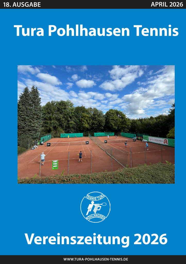 18 TURA POHLHAUSEN TENNIS Vereinszeitung 2026 HERREN II Es geht 2026 neu an den Start, unser 2. Herrenteam. Teams Herren II (4er) | 3. Kreisklasse Eine engagierte Gruppe von Neu- und Wiedereinsteigern fand in den letzten zwei Jahren den Weg nach Pohlhausen. Da noch nicht alle dieser Spieler die 30 Jahre überschritten haben und sich daher nicht alle den Herren 30 anschließen können, entschlossen sich die Spieler, ein weiteres Herrenteam in der offenen Altersklasse zu gründen - und die, die altersmäßig können, unterstützen zudem das 30er-Team. D i r e k t z u r T a b e l l e Dein Kontakt zu den Herren II Mannschaftsführer: Dominik Rosinski (0178 - 1383993) Trainingszeit: Montag 18:30 - 20:00 Uhr 7 8 9 10 11 12 13 14 15 16 17 18 19 20 21 22 23 24 25 26 27 28 29 LK 17,3 Name Platt, Lucas 18,5 23,8 Lehmann, Valentin Bosbach, Georg 23,0 Heldt, Patrick 22,0 22,2 24,0 25,0 23,5 Pahl, Kevin Lang, Daniel vom Stein, Marius Schröder, David Frank, Christian 25,0 Wagner, Fabian 25,0 Diel, Justus 24,0 24,5 23,9 24,0 24,5 24,5 24,0 24,0 24,0 24,0 Klein, Marcel Rosinski, Dominik Gliss, Noah Benten, Marvin (2235) Scholz, Marius Filser, Marcel Hackländer, Christoph Loureiro Marques, Justin Preyer, Marius Schneider, Lucas 24,5 Dörken, Peer 25,0 Brestel, Fynn Heimspiele Herren II 17.05. 9:00 Uhr TC Glöbusch 2 31.05. 9:00 Uhr BTC BW Kürten
