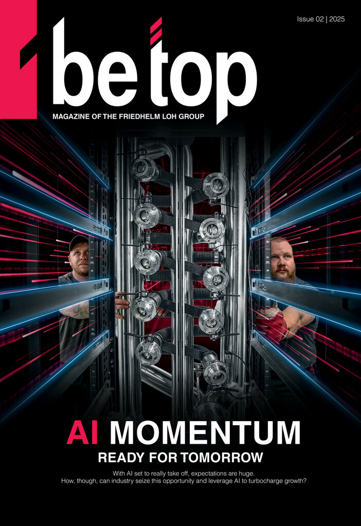 OUTLOOK | PUBLICATION D ETAILS In Issue 01 | 2026: HIGH STANDARDS FOR TOP PERFORMANCE Przemyslaw Orlik has good reason to be happy. At OREX Rotomoulding, the smooth running of business operations matches the true running of the rotational moulding ma- chines that the company manufactures in Chybie, Poland, for customers around the world. Solutions from Eplan, Rittal and Rittal Automation Systems are part of this success story. Find out more in the next issue of be top! PUBLICATION DETAILS BE TOP Magazine of the Friedhelm Loh Group Issue 02 | 2025 ISSN 2195-3198 PUBLISHER Friedhelm Loh Stiftung & Co. KG CEO: Prof. Friedhelm Loh Rudolf-Loh-Strasse 1 35708 Haiger, Germany Tel. +49 (0) 2773 924-0 E-mail: betop@friedhelm-loh-group.com www.friedhelm-loh-group.com RESPONSIBLE EDITOR Dr Carola Hilbrand (legally responsible for content) PROJECT MANAGEMENT Patricia Späth REALISATION AND DESIGN TERRITORY GmbH Brüsseler Strasse 89-93 50672 Cologne, Germany Tel. +49 (0) 221 998 051 311 E-mail: territory-koeln@territory.group www.territory.de EDITOR-IN-CHIEF Hans Robert Koch 76 | EDITING Daniel Giebel AUTHORS Martin Barde, Sarah Benscheidt, Michael Corban, Charlotte Erdmann, Daniel Giebel, Birgit Hagelschuer, Cathrin Hesseler, Markus Huneke, Hans Robert Koch, Steffen Maltzan, Steve Mills, David Schahinian, Ulrich Sendler, Patricia Späth, Ralf Steck, Johannes Strähle, Christian Vilsbeck ENGLISH ISSUE Linguatext Ltd, Martin Planer (translation management and proof-reading), John Wilkins (proof-reading) PHOTOGRAPHY Michael Koch, Digital Fotogroup GmbH GRAPHICS Nina Konzmann, Claudia Kuhn, Petra Nienstedt, Jana Niermann, Andrea Stitz, Joachim Jung PRINTING AND LITHOGRAPHY JD Druck GmbH Umgehungsstrasse 39 36341 Lauterbach, Germany Tel. +49 (0) 6641-9625-0 E-mail: info@jd-druck.de www.jd-druck.de PHOTO CREDITS Adobe Stock: p. 02, p. 04, p. 05, p. 08-11, p. 15 (Papisut/AI-gen.), p. 05, p. 62 (ApoevArt), p. 12-13, p. 15 (Vadym), p. 16-17 (Kanurisme/KI-gen.), p. 13 (SdecoretMockup), p. 12-13 (Jürgen Fälchle/KI-gen.), p. 32-33 (MOPP/KI-gen.), p. 32-33 (Micke), p. 38, p. 55 (Chalabala), p. 38-39 (gt29), p. 39 (Omias/KI-gen.), p. 48 (demzp/KI-gen.), p. 55 (bluedesign), p. 58-59, p. 61 (Jamrooferpix), p. 58-59 (Menahan/ KI-gen.), p. 60 (Steve Dean/KI-gen.), p. 61 (A_n_d_i_K), p. 64-65 (WrightStudio), p. 70 (womue); CIDEON Software & Services GmbH & Co. KG: p. 63; compamedia GmbH: p. 06; Digital Realty: p. 24-27; Jasper Ehrich: p. 14; Eplan GmbH & Co. KG: p. 13, p. 15, p. 28, p. 39, p. 60-61, p. 79; GEA: p. 59-60; GSI Helmholtzzentrum: p. 23; Hephata: p. 71; Larine Hoffmann: p. 70; Valéry Kloubert: p. 64-67, p. 70; Michael Koch/Digital Fotogroup: cover, p. 03-06, p. 20-23, p. 30-37, p. 40-47, p. 54-57, p. 74-77; Dawin Meckel/OSTKREUZ: p. 68-69; Meta: p. 19; Pezag AG: p. 49; Purdue Polytechnic: p. 07; Rittal AG Switzerland: p. 48-49; Rittal China: p. 50-51; Rittal GmbH & Co. KG: p. 06-07, p. 29, p. 39, p. 61; Rittal Italy: p. 52-53; Rittal Ukraine: p. 39; Dietmar Roller: p. 05, p. 72-73; Siemens: p. 16-17; Spanish Red Cross: p. 71; Tafel Hessen: p. 71; Tetra Pak: p. 63 © Friedhelm Loh Group 2025