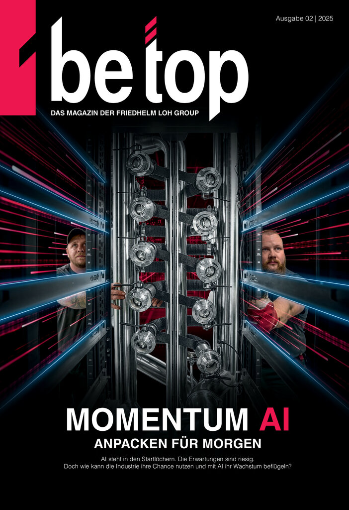 AUSBLICK | IMPRESSUM Ausgabe 01 | 2026: MIT STANDARDS AN DIE SPITZE Przemyslaw Orlik hat gut lachen. Das Geschäft von OREX Rotomoulding läuft so rund wie die Rotationsmaschinen, die das Unternehmen im polnischen Chybie für Kunden auf der ganzen Welt baut. Teil der Erfolgsgeschichte sind Lösungen von Eplan, Rittal und Rittal Automation Systems. Mehr dazu lesen Sie in der nächsten Ausgabe der be top! IMPRESSUM BE TOP Das Magazin der Friedhelm Loh Group Ausgabe 02 | 2025 ISSN 2195-3198 HERAUSGEBER Friedhelm Loh Stiftung & Co. KG Vorstandsvorsitzender: Prof. Friedhelm Loh Rudolf-Loh-Straße 1 35708 Haiger Tel. +49 (0) 2773 924-0 E-Mail: betop@friedhelm-loh-group.com www.friedhelm-loh-group.com VERANTWORTLICH Dr. Carola Hilbrand (V. i. S. d. P.) PROJEKTLEITUNG Patricia Späth REALISATION UND GESTALTUNG TERRITORY GmbH Brüsseler Straße 89–93 50672 Köln Tel. +49 (0) 221 998 051 311 E-Mail: territory-koeln@territory.group www.territory.de 76 | CHEFREDAKTION Hans Robert Koch REDAKTION Daniel Giebel AUTOREN Martin Barde, Sarah Benscheidt, Michael Corban, Charlotte Erdmann, Daniel Giebel, Birgit Hagelschuer, Cathrin Hesseler, Markus Huneke, Hans Robert Koch, Steffen Maltzan, Steve Mills, David Schahinian, Ulrich Sendler, Patricia Späth, Ralf Steck, Johannes Strähle, Christian Vilsbeck FOTOGRAFIE Michael Koch, Digital Fotogroup GmbH GRAFIK Nina Konzmann, Claudia Kuhn, Petra Nienstedt, Jana Niermann, Andrea Stitz, Joachim Jung DRUCK UND LITHOGRAFIE JD Druck GmbH Umgehungsstraße 39 D-36341 Lauterbach Tel. +49 (0) 6641-9625-0 E-Mail: info@jd-druck.de www.jd-druck.de BILDNACHWEISE Adobe Stock: S. 02, S. 04, S. 05, S. 08 –11, S. 15 (Papisut/KI-gen.), S. 05, S. 62 (ApoevArt), S. 12 –13, S. 15 (Vadym), S. 16 – 17 (Kanurisme/KI-gen.), S. 13 (SdecoretMockup), S. 12 –13 (Jürgen Fälchle/KI-gen.), S. 32 – 33 (MOPP/KI-gen.), S. 32 – 33 (Micke), S. 38, S. 55 (Chalabala), S. 38 – 39 (gt29), S. 39 (Omias/KI-gen.), S. 48 (demzp/KI-gen.), S. 55 (bluedesign), S. 58 – 59, S. 61 (Jamrooferpix), S. 58 – 59 (Menahan/KI-gen.), S. 60 (Steve Dean/ KI-gen.), S. 61 (A_n_d_i_K), S. 64 – 65 (WrightStudio), S. 70 (womue); CIDEON Software & Services GmbH & Co. KG: S. 63; compamedia GmbH: S. 06; Digital Realty: S. 24 – 27; Jasper Ehrich: S. 14; Eplan GmbH & Co. KG: S. 13, S. 15, S. 28, S. 39, S. 60 – 61, S. 79; GEA: S. 59 – 60; GSI Helmholtzzentrum: S. 23; Hephata: S. 71; Larine Hoffmann: S. 70; Valéry Kloubert: S. 64 – 67, S. 70; Michael Koch/Digital Fotogroup: Titel, S. 03 – 06, S. 20 – 23, S. 30 – 37, S. 40 – 47, S. 54 – 57, S. 74 – 77; Dawin Meckel/OSTKREUZ: S. 68 – 69; Meta: S. 19; Pezag AG: S. 49; Purdue Polytechnic: S. 07; Rittal AG Schweiz: S. 48 – 49; Rittal China: S. 50 – 51; Rittal GmbH & Co. KG: S. 06 – 07, S. 29, S. 39, S. 61; Rittal Italien: S. 52 – 53; Rittal Ukraine: S. 39; Dietmar Roller: S. 05, S. 72 – 73; Siemens: S. 16 – 17; Spanisches Rotes Kreuz: S. 71; Tafel Hessen: S. 71; Tetra Pak: S. 63 © Friedhelm Loh Group 2025